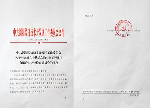 2017年12月19日,中共绿之韵生物工程集团有限公司纪律检查委员会成立暨第一届委员选举大会成功召开。会上,根据中共浏阳经济技术开发区工作委员会[2017]6号文件批复,中共绿之韵生物工程集团有限公司纪律检查委员会正式成立。会上选举并产生了第一届纪委班子。绿之韵集团常务副总经理胡均安,副总经理梅其慧,党委书记刘云、副书记许达仲携各党支部书记、全体党员参加会议。本次大会还特别邀请了浏阳经开区党群工作局科长李庆参加会议。
