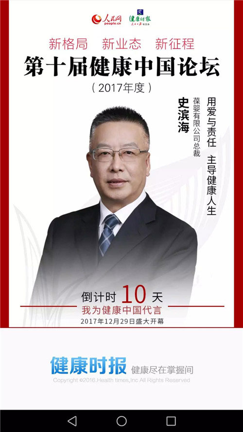 葆婴有限公司总裁史滨海获邀为健康中国代言