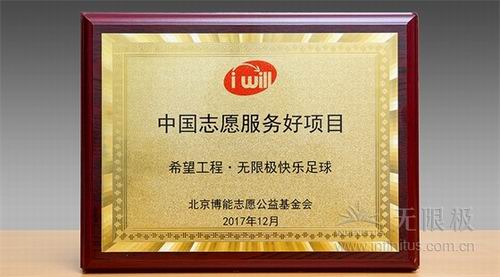 12月5日,“世界联合公益慈善周”开幕式暨2017全球NGO智库年会——国际志愿者日全球论坛在海口香格里拉酒店举行。在会上,“无限极快乐足球”项目荣获由中国好项目平台颁发的“中国志愿服务好项目”认证。