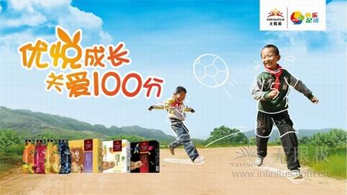 2017年,无限极结合企业自身的产品优势,推出了“优悦成长 关爱100分”公益捐赠活动,活动期间消费者凡购买指定产品,即向“无限极快乐足球”捐助1元。活动共筹到21600盒成长营养棒,价值213.84万元,由快乐足球支教志愿者在出征的同时带上这份“爱的营养味道”,奔赴各所希望小学,带着爱心去支教。