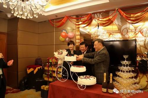 “生日快乐”歌环绕在会议现场,绿活美地公司迎来了一周年的生日会。公司董事长张仁久先生、副总裁苏芝予女士及12月寿星(经销商伙伴),共同为绿活美地切开生日蛋糕;公司董事长张仁久先生、副总裁苏芝予女士与三位市场营销总监,共同将香槟酒倒入杯塔,台下掌声雷动,大家共同祝贺绿活美地一周年生日快乐!未来,绿活美地将带着荣光与梦想继续前行!