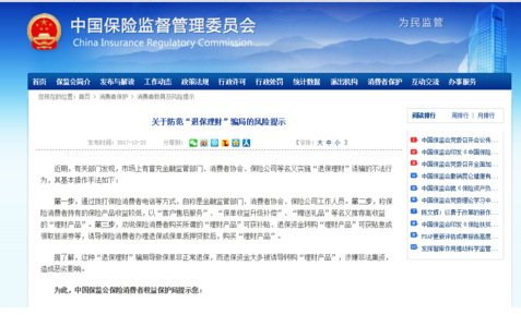 12月22日,保监会在官网发布《关于防范“退保理财”骗局的风险提示》(下称“提示”)。据了解,这种“退保理财”骗局导致保单非正常退保,而退保资金大多被诱导转购“理财产品”,涉嫌非法集资,造成恶劣影响。