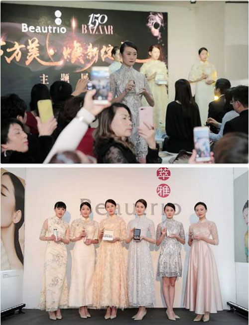 模特们身穿别具东方韵味的服装,手持萃雅产品,将东方美的精髓演绎得淋漓尽致。惊艳全场的舞台效果,当然少不了萃雅系列产品的功劳。