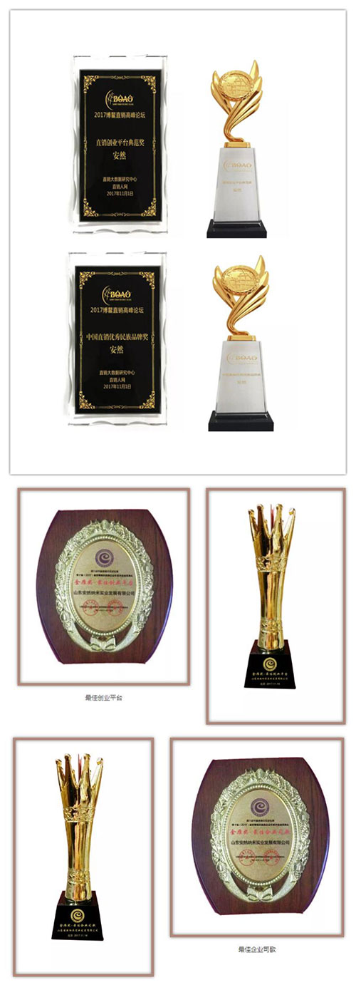 年底,安然在2017博鳌直销高峰论坛、第十届最受尊敬的直销企业年度评选颁奖典礼暨第八届中国直销文化论坛、第十届时代营销盛典等多项行业年度评选典礼上荣获多项大奖,以其优质平台、深厚的企业文化以及不遗余力助推行业发展的精神得到业界认可。