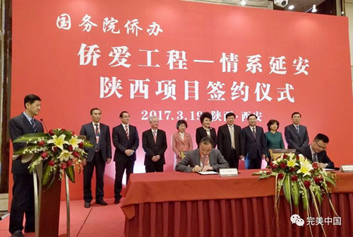 3月19日-20日,由国务院侨务办公室和陕西省人民政府共同举办的“侨爱工程——情系延安”项目签约及启动仪式分别在西安和延安举行,古润金等热心公益事业的海外侨胞、港澳同胞共同见证项目启动。