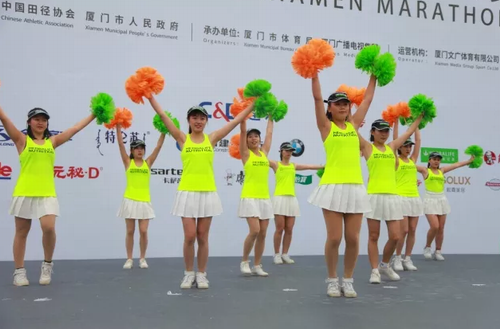 在起跑点为所有跑者献上热力四射的奶昔操
