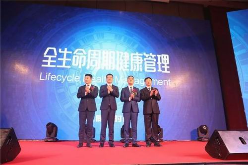 康美时代总经理朱庆华、康美健康云总裁彭少毅、奥佳华(集团)副总经理张云龙、康美时代营销副总经理郑旭东一同开启了“全生命周期健康管理”的未来之门