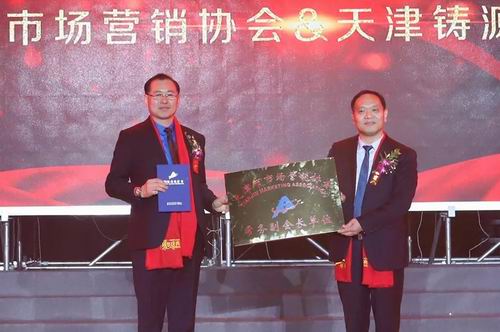 天津市营销协会授予铸源国际常任理事单位,铸源国际执行总裁李政宏先生代表公司接受表彰。