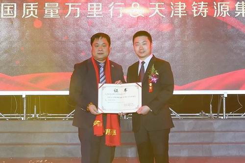 中国质量万里行授予铸源国际理事委员会单位,铸源国际副总裁高长新先生代表公司接受表彰。