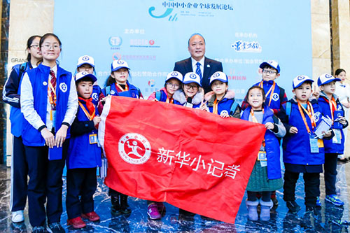 李金元董事长现场接受新华小记者团采访,并送出对孩子们的祝福和关爱