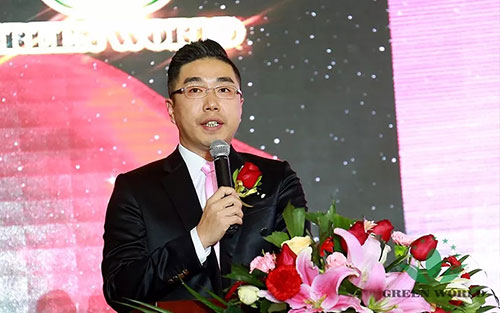 首先绿世界集团总裁李德明博士在全场热烈的掌声和欢呼声中登台,李博士首先对到场的嘉宾朋友致以诚挚的问候,并对家人们在2017年取得的成就表示认可。2018年将会开启新的篇章,沃德绿世界也将会迈入新的台阶,希望所有家人们一起心手相连,共同见证沃德绿世界繁荣发展大时代的到来。
