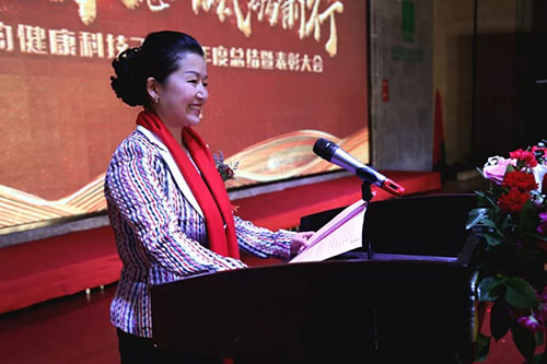 大会伊始,绿之韵健康科技执行董事吕秀玲登台发表致辞。吕董首先代表绿之韵健康科技向与会家人表示感谢和祝福。回首刚刚过去的2017年,吕董指出,在宏观利好背景下,绿之韵健康科技在2017年迎来了全新的发展格局。她对公司的信念初衷、全新战略进行了精炼的解析和概括,对以彭铭总裁为核心的公司员工团队表示高度认可,对家人们一年来的付出表示敬意和感谢。她寄望公司所有家人初心不忘,砥砺前行,用智慧与奉献开创健康科技美好的明天!
