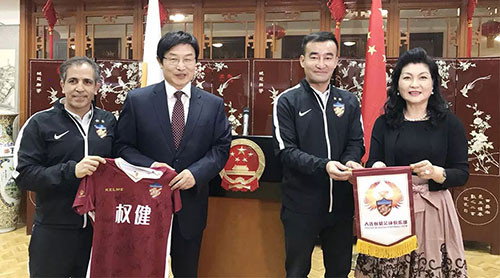2018年1月23日,当地时间14:45,大连权健女足在海外拉练的首场友谊赛中,以7比0大胜塞浦路斯女足国家队。赛后,权健女足全体成员前往中国驻塞浦路斯大使馆,受到了中国驻塞浦路斯大使夫妇的接见和宴请。独在异乡为异客,每逢佳节倍思亲,远在异国他乡看到国旗,看到同胞,每个人都感到分外亲切。