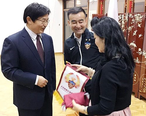大连权健女足受中国驻塞浦路斯大使夫妇接见