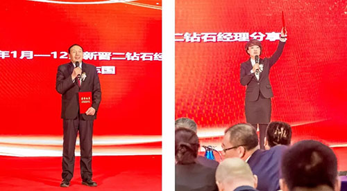 表彰大会对林和平精英团队产生的83位新晋二钻经理进行褒奖,新晋二钻经理代表黄志国、隋晓丽分享。