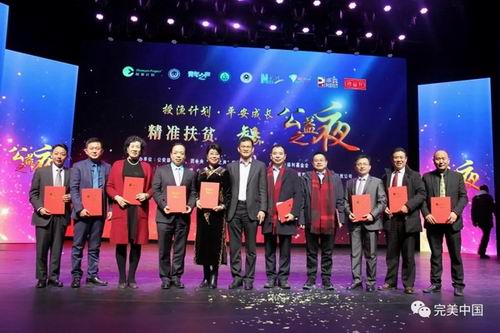 1月25日,“授渔计划·平安成长”公益之夜暨精准扶贫“志+智”活动在北京举行,完美(中国)有限公司获颁“公益卓越践行奖”。完美公司总裁胡瑞连作为授渔计划公益促进中心副理事长出席活动。