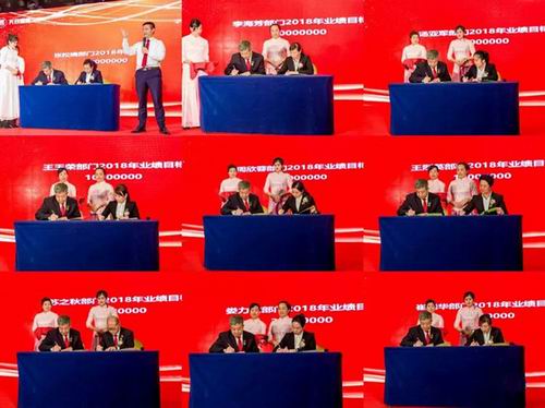 团队创始人林和平先生与管理委员会委员签订了2018年度业绩目标,立下新年征程的目标:2018年度团队将完成业绩目标4个亿。