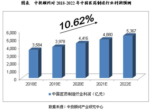 2016年,我国医药制造行业利润总额达3,002.9亿元;2017年1~8月,我国医药制造行业利润总额达2,127.6亿元。我们预计,2018年我国医药制造行业利润将达到3,584亿元,2022年为5,367亿元,未来五年(2018~2022年)年均复合增长率约为10.62%。