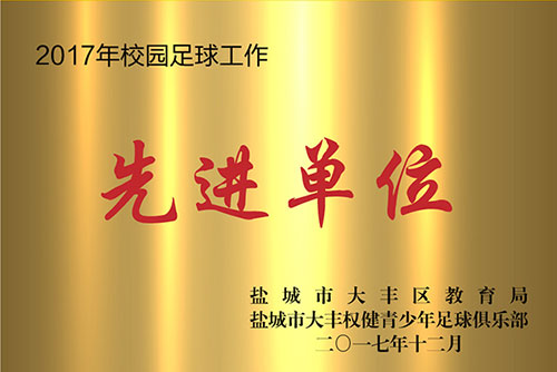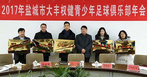 随后,朱见贤科长宣读了权健青少年足球俱乐部与大丰区教育局共同商定的2017校园足球工作年度表彰、奖励决定。大丰区教育局副局长、大丰区教师发展中心主任、盐城市大丰权健青少年足球俱乐部主席何钢为受表彰单位颁发奖牌。为在过去的一年为大丰区青少年校园足球工作发展作出积极贡献的单位进行表彰。