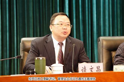 大会由浏阳经开区党工委书记郭力夫主持。会议伊始,经开区党工委副书记、管委会主任谈文昌代表区党工委、管委会总结一年来工作情况。2017年,浏阳经开区实现了经济发展稳中向好,稳中趋优,全面完成了全年的目标任务。园区被湖南省产业园区建设领导小组办公室评定为全省134个产业园区中综合评价第一名;在长沙市重大项目观摩评比中排名国家级园区第一;生物医药众创空间被国家科技部批准为国家级众创空间;园区企业实现2家在主板上市,2家在新三板挂牌。2017年已成为园区近年来推进速度最快、发展势头最旺、增长质量最好的一年。2018年,浏阳经开区经济工作的指导思想是:全面贯彻党的十九大精神,根据省、市经济工作部署,以质量效益为中心、以改革创新为动力、以项目建设为抓手,围绕“产业项目建设年”的工作主题,着力“强产业、补短板、优品质、聚人气”,努力实现“质量变革、效率变革、动力变革”,开创新时代园区改革、创新、发展的新局面。
