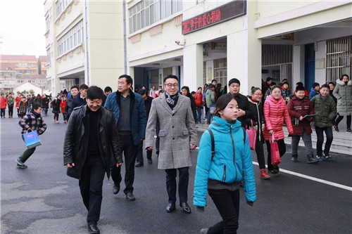 在正红镇镇长徐军、滨海县教育局副局长王青、滨海县教育局初教科科长朱卫东、正红镇中心小学校长杨春的陪同下,徐建成董事长来到正红镇中心小学,看望学校师生。