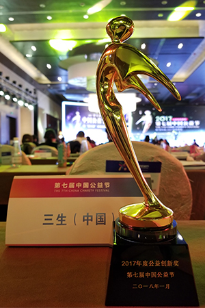 近日,第七届中国公益节在北京富力万丽酒店举行。三生(中国)的“平安共建·关爱少儿安全健康”项目荣获2017年度公益创新奖。这是三生公益之路上获得的又一奖项,既是对平安共建项目的肯定,也是对三生慈善事业的认可与鼓励。