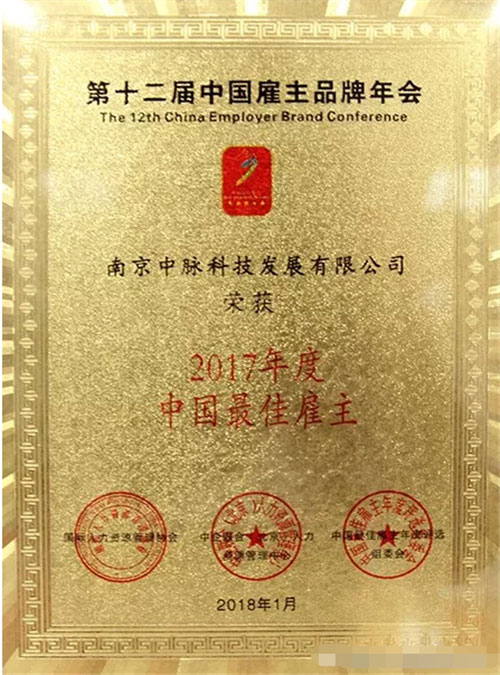 近日,“第十二届中国雇主品牌年会暨中国最佳雇主评选颁奖盛典”在北京中国科技会堂隆重举行,在会上,鉴于在人才吸引、员工发展与关怀等雇主品牌塑造和建设方面所做出的卓越表现,中脉荣获了“2017年度中国最佳雇主”荣誉称号,这也是中脉连续第5次荣膺该项殊荣。