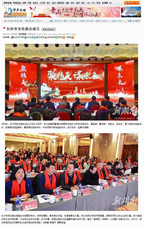 暖融星城夜,迎新把酒时。当晚,还举行了“共聚湘情 共筑湘梦”长沙市安化商会感恩答谢晚宴。湖南卫视、新湖南、红网、《潇湘晨报》、《中国工商时报》、湖南民生在线、安化电视台等多家新闻媒体对本次活动进行了报道。中国新商会联盟、安化经济促进会北京分会、广州市安化商会等数十家单位发来贺电祝贺长沙商成立。