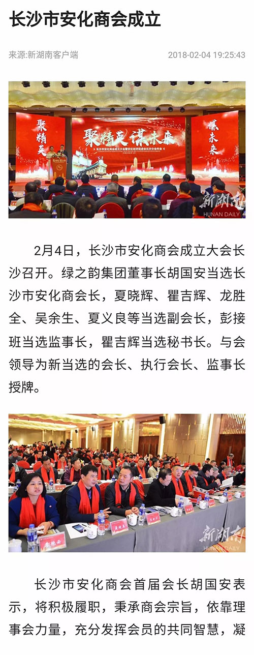 绿之韵胡国安当选长沙市安化商会首任会长