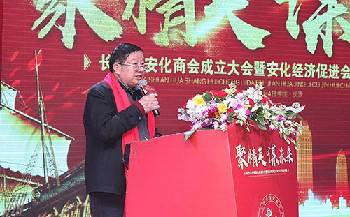 会议伊始,长沙市社会组织管理局局长李红辉宣读《长沙市民政局关于同意成立长沙市安化商会的行政许可决定》。安化经济促进会长沙分会理事长李蒲初致欢迎辞并作工作报告。他表示,长沙市安化商会的成立是全体安化籍企业家的一件大喜事,是搭建精诚合作、抱团发展,实现行业、区域大融合,增强在长安化老乡凝聚力和向心力的平台。未来,长沙市安化商会将为长沙的安化企业家构建一个互帮互助、交流合作的平台,为安化企业家在企业和政府之间建立一个桥梁和纽带,发挥平台优势,更好地服务企业、服务会员。原省公安厅党委副书记、常务副厅长胡旭曦,原北京市公安局现役办主任谌再来,原湖南省粮食局局长、党组书记夏文星,原湖南省行业办主任、党组书记夏纯玉等担任商会顾问。