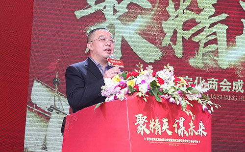 湖南省政协委员、湖南省工商联(总商会)副会长、长沙市安化商会会长、绿之韵集团董事长胡国安讲话
