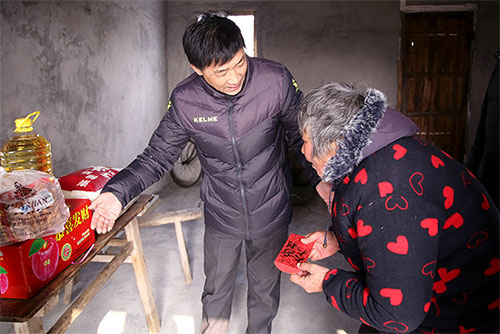权健(华东)副总单龙军将年货送到贫困户家中
