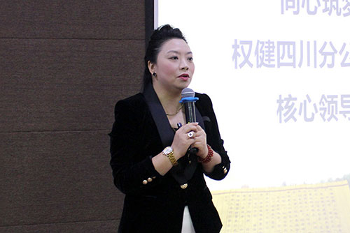 权健四川分公司总经理陈丽娟的致辞拉开了本次会议的序幕,陈经理表示,在过去的一年里,感谢各位市场精英的配合,因为大家的配合,分公司的工作才得以顺利进行,希望2018年大家的权健事业能够再创辉煌。