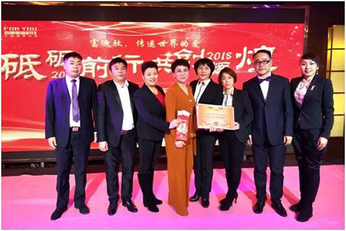 获得“优秀领导人”奖的系统领导与叶根女士合影