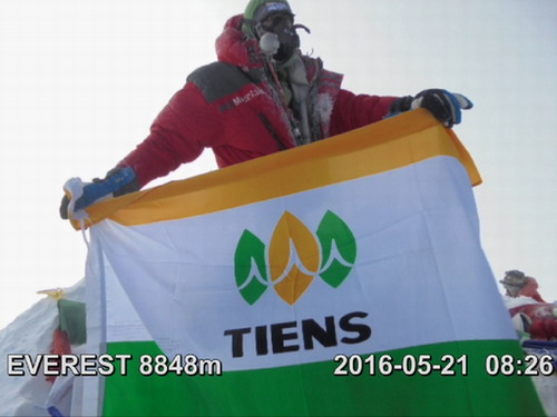 天狮集团经销商家庭成员、登山体育运动员B.TSEVEENDASH先生携天狮旗帜成功登顶世界屋脊