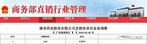 康美药业股份有限公司、如新(中国)日用保健品有限公司、权健自然医学科技发展有限公司、浙江致中和生物工程有限公司对直销培训员备案进行了调整。