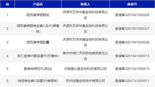 河南获准6款新品,其中3款来自济源市万洋华康生物科技有限公司,另外3款分别来自焦作市明仁天然药物有限责任公司、河南爱心堂生物科技有限公司、郑州迪隆生物技术有限公司。