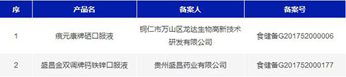 贵州获准2款新品,分别来自铜仁市万山区龙达生物高新技术研发有限公司、贵州盛昌药业有限公司。