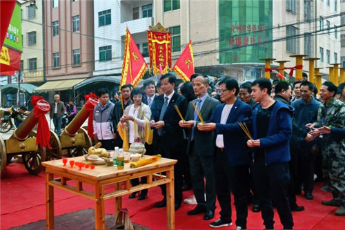 七点整,陈怀德先生带领笔亨村村长、众嘉宾在笔亨村门楼祭祀天地,拜土地公,祈福保佑笔亨村来年风调雨顺,家家户户家宅平安,农林牧业获得丰收。