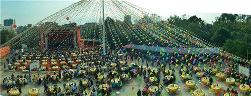 当天恰逢陈怀德先生生日纪念,借此吉日,全村举办晚会庆典,在村里设宴330多桌,随着16道美味可口的化州菜端上圆桌,村民们吃得有滋有味。席间,陈怀德先生感恩大家欢聚一堂,并与村民们换盏推杯、举酒畅饮,祝愿大家在新的一年里身体健康、阖家欢乐、万事胜意。村民们纷纷表示:感谢陈家兄弟造福乡梓,拳拳赤子之心苍天可鉴……