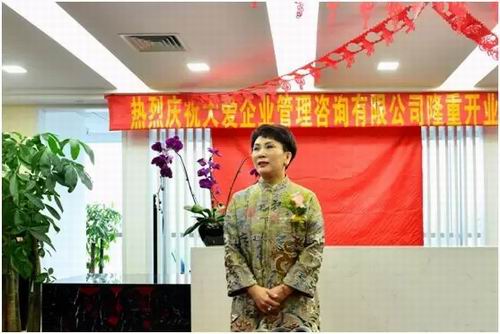 叶根女士致辞时对莅临的嘉宾表示衷心的感谢和诚挚的问候。她说道:十九大胜利召开,中国特色社会主义各项事业也取得了新的重大成就。我们作为中华民族群众的一员,深感荣幸与骄傲。大爱公司成立以后,有责任,更有决心,坚持以新时代中国特色社会主义思想为指导,贯彻实施十九大重点报告指出内容,推进党建设伟大工程,与国、与民凝心聚力,以只争朝夕的精神投入工作,做好企业职责工作,坚持一手抓推进国家经济发展,一手抓心灵净化之旅,为开创新时代中国特色社会主义事业新局面,上下同心,砥砺前行。打一场企业家的心灵保卫战,国民一体共筑中国经济新长城。也许我们干不了什么惊天动地的大事,但我们会做好含着大爱的每一件小事。风好正是扬帆时,我们会撸起袖子加油干。2018,重心出发,让爱回家!
