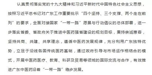 依托广东中医药产业发展的区位、地缘、人缘优势,服从和服务于国家全方位对外开放新格局的整体部署,从广东与沿线各国的实际出发,推动中医药与沿线各国深度融合。