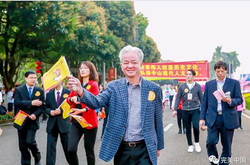 3月2日,在万家团圆的元宵佳节,一年一度的“慈善万人行”活动在广东中山举办,来自社会各界的善心人士组成巡游方阵,展现伟人故里博爱文化。完美(中国)有限公司董事长古润金受邀列席答谢台观礼,副董事长许国伟率领320名完美员工组成公益方阵行走在爱心大道上,践行中山精神、共建博爱家园。从1996年开始,完美公司连续23年助力万人行盛会,今年再次捐赠200万元善款,累计捐款总额逾2900万元。
