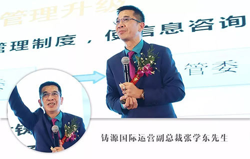 铸源国际运营副总裁张学东先生认真分析了当前直销形势,明确提出了经营方向,奋斗目标和具体实施,科学整理了公司7大规划及9大亮点,让家人们强化信心,为家人们拓展市场推波助力