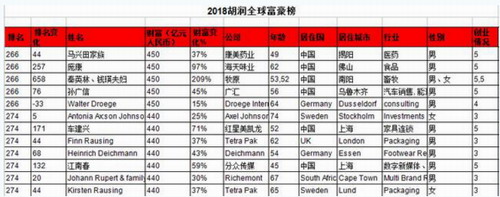 近些年来在A股市场表现抢眼的康美药业,因其中医药企业的身份,成为2018年榜单中独特的“中国明星”。2018年马兴田家族以450亿元的财富,位居国内第61名,全球第266位,全球排名比上一年的第310位有明显提升。