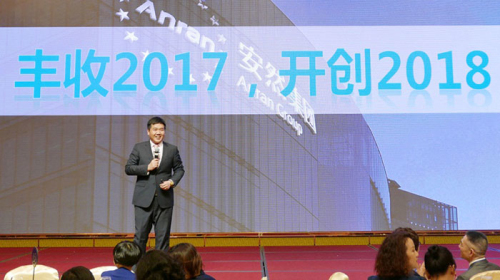 今天注定是不平凡的一天,公司领导不仅带来了新年祝福,还为大家带来2018年的全方位的利好消息,首先是直销中华区执行总裁陶剑俊先生为宴会致辞,陶总用精炼的语言对2018年的安然规划进行了阐释,并且对市场团队、对伙伴都充满了信心,陶总致辞引发了伙伴们的阵阵掌声。