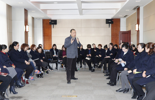 在认真学习了吴晓红老师爱岗敬业的精神后,我们迎来了国家二级心理咨询师波夫老师《让爱流动》的心理培训课程。波夫老师凭借着专业的理论知识,丰富的教学经验,还有温和亲切的笑容,幽默风趣的语言,让枯燥的理论知识,在家人们的实地演练中幻化成了一个个妙趣横生的小故事,引得学员们笑声不断,将现场气氛推向高潮。