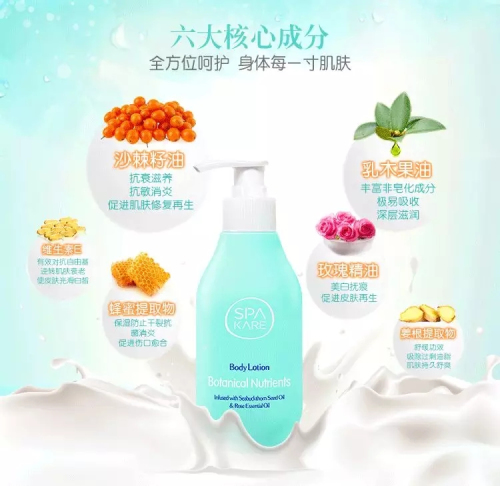 棘萃恒润身体乳,富含乳木果油、沙棘籽油、蜂蜜提取物、姜根提取物、玫瑰精油。