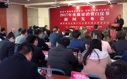 2018年3月10日,由《中国质量万里行》杂志社、中国质量万里行投诉平台主办的“2017年度质量消费白皮书新闻发布会暨百家企业履行社会责任倡议承诺活动”在北京举行。国家质检总局执法督查司司长严冯敏,中国质检报刊社社长谷旭,中国法学会消法研究会会长河山,中消协原副秘书长武高汉,中国质检报刊社副社长兼副总编辑李本军,国家日用电器质量监督检验中心副主任刘国荣,《中国质量万里行》杂志社社长汪鹤林、副社长王黎明等出席发布会。绿之韵集团总裁助理蒋文代表集团公司受邀参会。