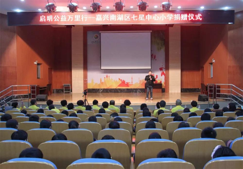 启明公益基金会浙江项目部、北京罗麦科技有限公司浙江分公司外事经理夏海涛,嘉兴南湖区七星中心小学校长陈璐伟带领全校师生,罗麦爱心志愿者郑枫、陈佳伶、乔雁、杨洋、陈慧萍、史新霞、吴丹红、张洪明、沈雅红等参加了捐赠仪式。
